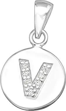KETTEN-ANHÄNGER RUND mit Buchstaben und Kristallen aus .925 Sterling Silber - Buchstabe V