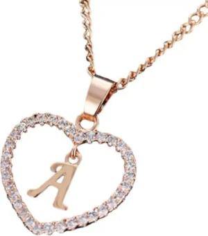 Kristall-Damenkette Herz und Buchstabe Rosegold aus Alloy (A)