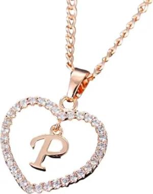 Kristall-Damenkette Herz und Buchstabe Rosegold aus Alloy (P)