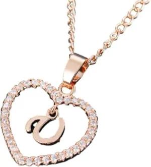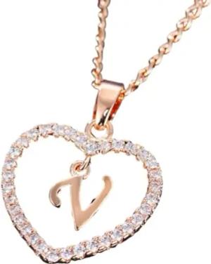 Kristall-Damenkette Herz und Buchstabe Rosegold aus Alloy (V)