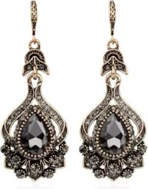 Ohrhänger Antik gold mit dunklen Kristallen aus Messing für Damen