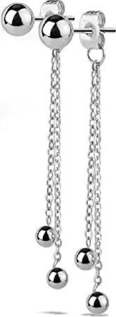 Ohrstecker mit Ketten und Kugeln für Damen aus 316L Edelstahl (silber)