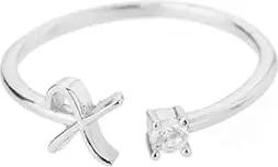 RING mit Buchstaben silber mit Kristall aus Metall - biegbarer Fingerring/Zehenring Toering für Damen, Kinder & Herren - X