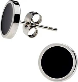 Runde Ohrstecker Schwarzer Kreis Silberner Rand 10mm aus Edelstahl Unisex