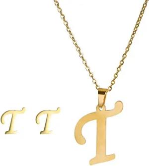 Schmuckset Buchstaben Gold aus Edelstahl für Damen (T)