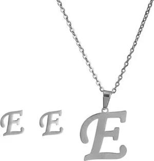 Silberfarbenes Schmuckset Letter aus Edelstahl für Damen - 1 Paar Ohrstecker & Kette mit Buchstabe nach Wahl (E)
