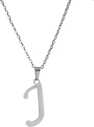 Silberfarbenes Schmuckset Letter aus Edelstahl für Damen - 1 Paar Ohrstecker & Kette mit Buchstabe nach Wahl (J)