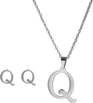 Silberfarbenes Schmuckset Letter aus Edelstahl für Damen - 1 Paar Ohrstecker & Kette mit Buchstabe nach Wahl (Q)