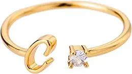 Buchstaben Ring roségold Zirkonia-Kristall aus Metall - biegbarer Fingerring/Zehenring Toering für Damen, Kinder & Herren - C