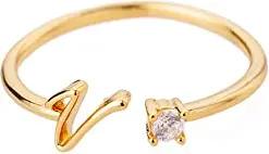 Toering Ring Buchstaben goldfarben mit Kristall aus Metall - V