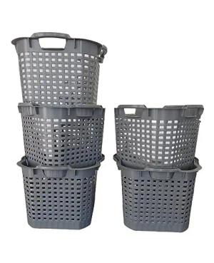 5x Erntekorb Gartenkorb lebensmittelecht - 25L Kartoffelkorb Obstkorb Laubkorb Grau, Wäschekorb, drehstapelbar, extrem robust