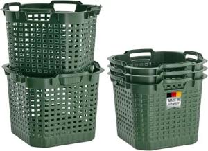 5x Erntekorb Gartenkorb lebensmittelecht - 25L Kartoffelkorb Obstkorb Laubkorb grün, drehstapelbar, extrem robust