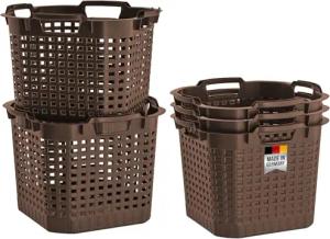 5x Erntekorb Kartoffelkorb Gartenkorb lebensmittelecht, 25L - Laubkorb Obstkorb Gemüsekorb 40x40x30cm Drehstapelkorb - HDPE Kunststoffkorb Vorratskorb stapelbar, braun, extrem robust