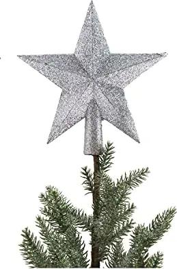 Baumspitze Silber Stern - Christbaumspitze Baumspitze 19cm hoch Spitze Glitzer Aufstecker für Tannenbaum Tannenbaumspitze Weihnachtsbaum Weihnachten