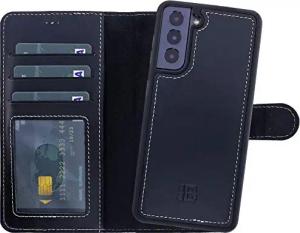 2-in-1 Handyhülle kompatibel mit Samsung Galaxy S21 FE - abnehmbares Back Cover, 360° Schutz, Echtleder, Detachable Case (Schwarz)