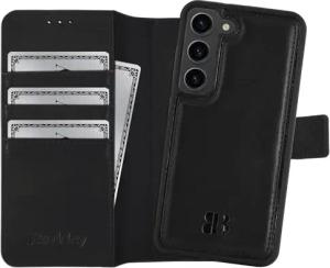 2-in-1 Leder Handyhülle für Samsung Galaxy S23 (5G) mit Abnehmbarer Schutzhülle, 360 Grad, abnehmbares Cover, Kartenfächer und Kick-Stand (Schwarz)