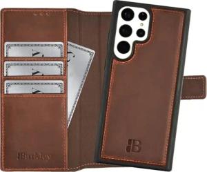 2-in-1 Leder Handyhülle für Samsung Galaxy S23 Ultra mit Abnehmbarer Schutzhülle, 360 Grad, abnehmbares Cover, Kartenfächer und Kick-Stand (Sattelbraun)