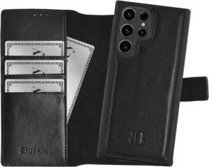 2-in-1 Leder Handyhülle für Samsung Galaxy S23 Ultra mit Abnehmbarer Schutzhülle, 360 Grad, abnehmbares Cover, Kartenfächer und Kick-Stand (Schwarz)