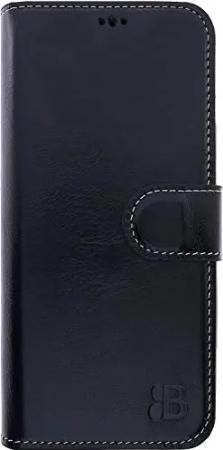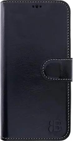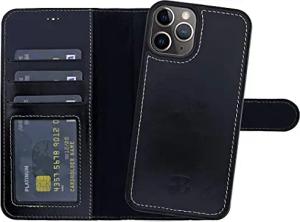 Leder Handyhülle für iPhone 13 Pro Max Leder Book Case Handytasche mit Magnetverschluss, 360° Schutz, Kick-Stand und Kartenfach (Schwarz)