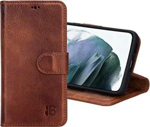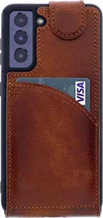 Leder Flip Case für Samsung Galaxy S21 Handyhülle Handytasche mit 360° Schutz und Kartenfach (Sattelbraun)