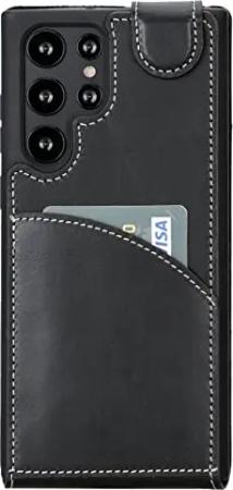 Leder Flip Case für Samsung Galaxy S22 Ultra Handyhülle Handytasche mit 360° Schutz und Kartenfach (Schwarz)