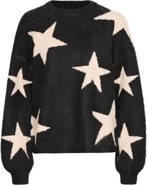 BYBxminya Damen Strickpullover Grobstrick Pullover mit Rippkragen Rippbündchen Relaxed fit, Größe:XL, Farbe:Black Mix (200453)