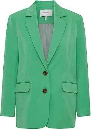 BYESTALE Damen Blazer Longblazer Jacke mit Reverskragen und Knopf mit Stretch, Größe:40, Farbe:Ming Green (165930)