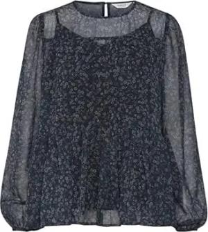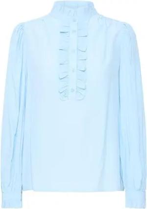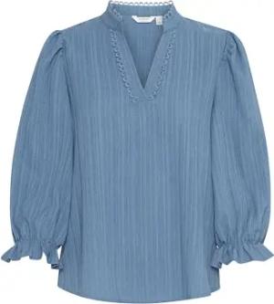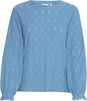 BYSilva Damen Bluse Shirtbluse Shirt Langarm mit Rüsschen Rundhals Regular fit, Größe:M, Farbe:Riviera (174027)