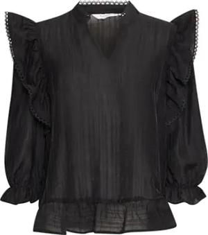BYIkaya Damen Bluse Blusenshirt Tunika mit Rüschen Ziernähten Regular fit, Größe:36, Farbe:Black (200451)