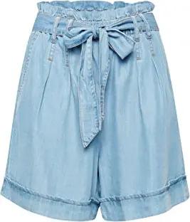BYLANA Shorts 3 Damen Jeans Shorts Kurze Hose aus 100% Lyocell elastischer Bund mit Bindegürtel Loose Fit, Größe:40, Farbe:Ligth Blue Denim (200460)