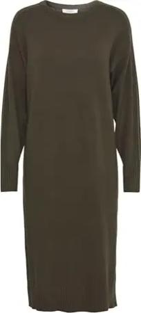 BYManina Damen Strickkleid Kleid Feinstrickkleid mit Rippkragen leicht elastisch Loose fit, Größe:S, Farbe:Olive Night (190515)
