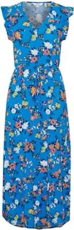 BYMMJOELLA Frill Dress Damen Freizeitkleid mit V-Ausschnitt Ärmellos A-Linie Loose-Fit Passform, Größe:40, Farbe:Ibiza Blue Mix (201819)