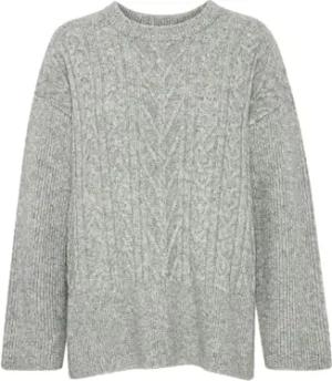 BYNello Damen Strickpullover Grobstrick Pullover mit Rundhals Loose fit, Größe:M, Farbe:Mid Grey Melange (200455)