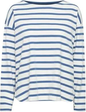BYRAMSI Pullover Damen Longsleeve Shirt Rundhals 100% Baumwolle Relaxed fit, Größe:L, Farbe:Off White Mix (200450)