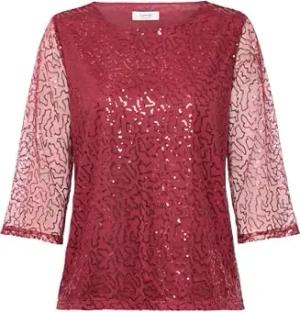 BYSoffa Damen Langarmshirt Longsleeve Shirt mit Pailletten Rundhals leicht transparent Regular fit, Größe:XS, Farbe:Port Royale (191627)