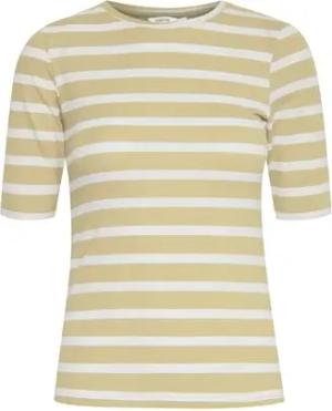 Byoung Damen Stretchy Basic T-Shirt Kurzarm Halbarm Rundhals Top Gestreiftes Oberteil BYPAMILA, Farben:Gelb, Größe:XL