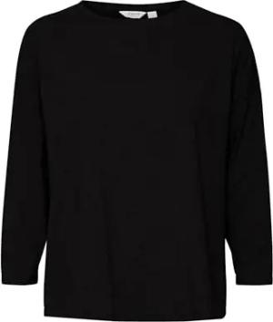 Damen T-Shirt lockere Passform 3/4-Ärmel gestricktes Design Hip-Länge, Farben:Schwarz, Größe:XL