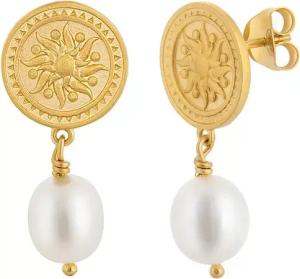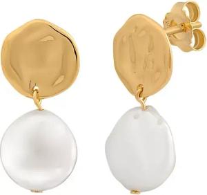 Ohrstecker 925 Silber vergoldet gehämmerter Coin und Süßwasserzucht Perle