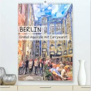 Berlin - Einmal Aquarelle mit Currywurst! (hochwertiger Premium Wandkalender 2026 DIN A2 hoch), Kunstdruck in Hochglanz: Illustrierte Stadtansichten von Berlin (CALVENDO Orte)