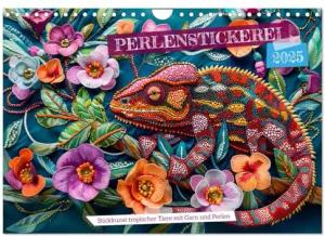 Perlenstickerei - Stickkunst tropischer Tiere mit Garn und Perlen (Wandkalender 2025 DIN A4 quer), CALVENDO Monatskalender: Kreative Stickkunst: ... und glitzernden Perlen (CALVENDO Kunst)