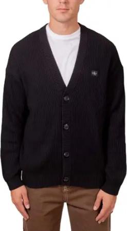 Relaxed Gerippte Strickjacke für Herren, Schwarz , Large