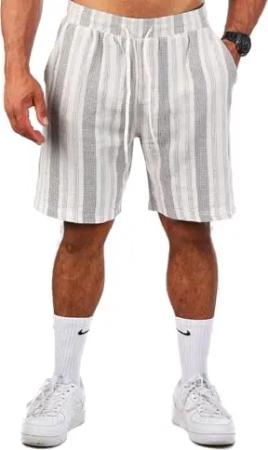Herren Shorts Kurze Hose gestreift trendig angenehm grob gewebt Retro Look 2201-2195, Grösse:L, Farbe:Leinengrau - gestreift (2201)