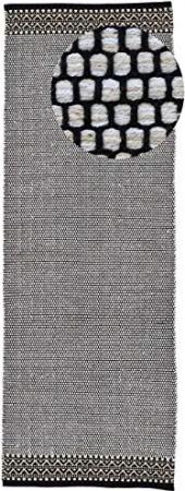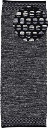 Baumwollteppich Kelim Mia Läufer Schwarz 75x240 cm | Moderner Teppich für Wohn- und Schlafzimmer