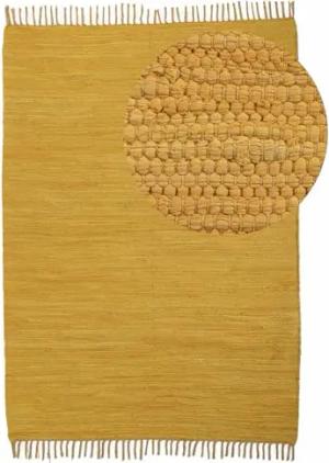 Flickenteppich Kelim Chindi Uni Gelb 90x160 cm, handgewebt | Fleckerlteppich aus Baumwolle für Wohnzimmermit Fransen