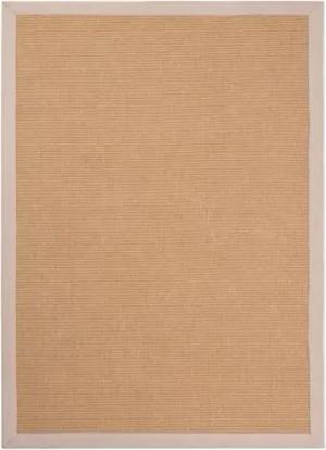 Sisalteppich Naturfarbe 140x200 cm handgewebt mit Bordüre aus Baumwolle in Taupe | Moderner Rutschfester Flachgewebeteppich Uni aus Naturfasern für Wohnzimmer, Schlafzimmer