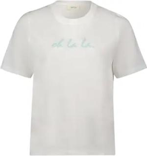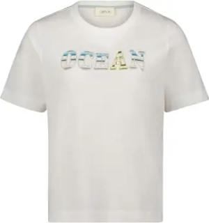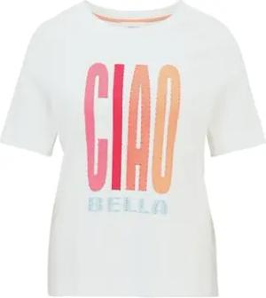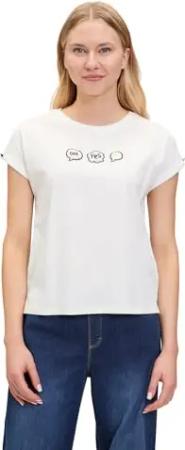Damen Rundhals-Shirt mit Placement 34, Patch Cream/Light Blue