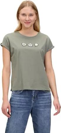 Damen Printshirt mit Rundhalsausschnitt 36, Patch Cream/Green