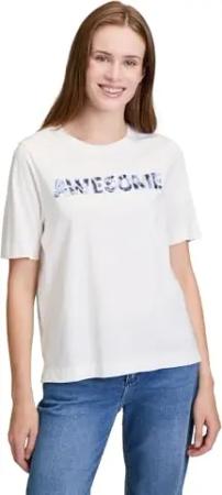 Damen Printshirt mit Ärmelaufschlag 40, Patch Cream/Gold