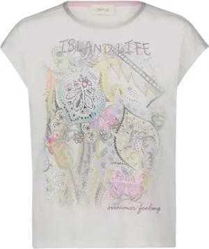 Damen Printshirt mit Rundhalsausschnitt 38, Patch Cream/Pink