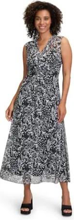 Damen Casual-Kleid ohne Arm 44, Weiß/Schwarz